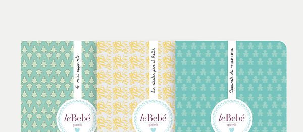 Logo restyling, progettazione grafica brochure, Packaging LeBebé Eau de Parfum Festa della Mamma, I Quadernini, allestimenti per vestrine con Sara Stefanini, Art Director Anna Mercurio
